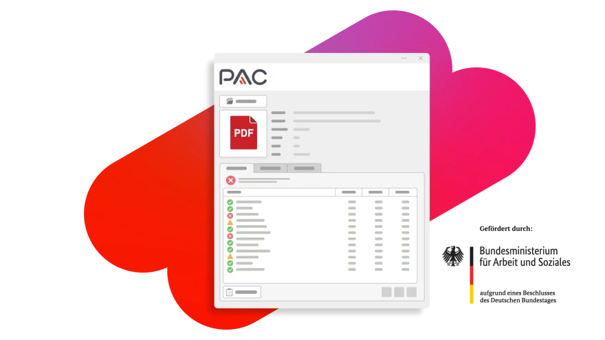 PAC ist das global eingesetzte, kostenlose und seit 2010 bewährte Prüfwerkzeug für PDF-Barrierefreiheit. Viele Anforderungen gemäß PDF/UA und WCAG kann PAC auf Knopfdruck prüfen. Und PAC unterstützt auch die zusätzlich erforderliche Sichtprüfung.