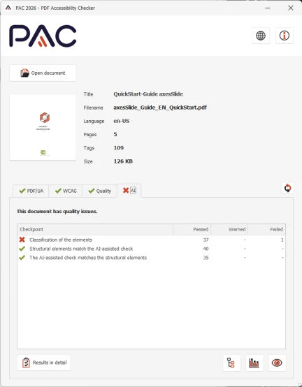 In the new 2026 version, PAC now also supports you with the human evaluation tasks through integrated AI.
